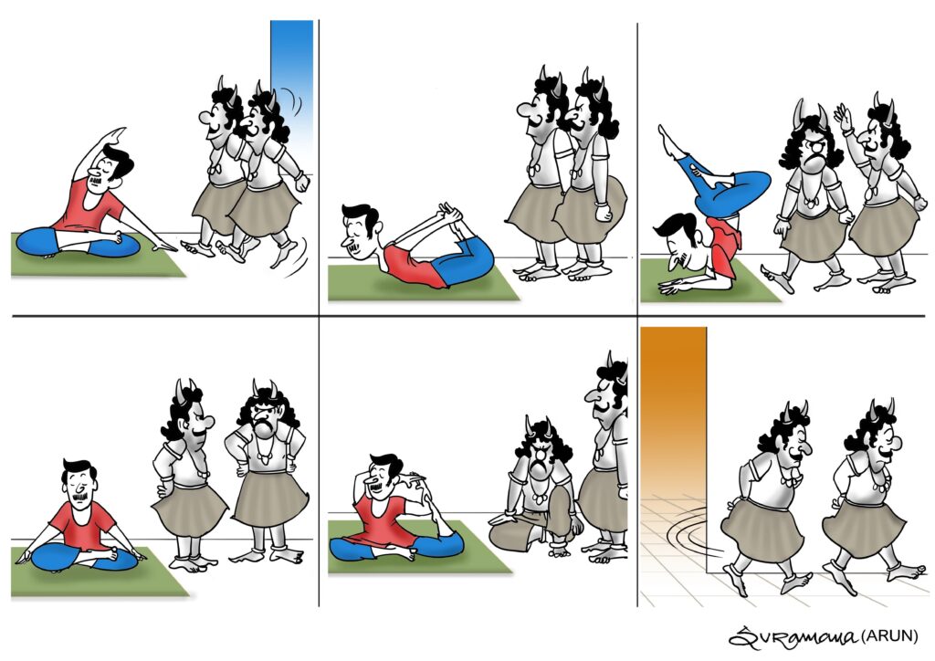 Cartoon Watch News : Hyderabad : Popular Yoga trainer Srimathi Sangeetha Ankatha sponsored and organised a cartoon contest on the subject of “Wellness through Yoga” on the occasion of International Yoga Day with the idea and planning of cartoonist Hari Krishna Nageswaram.